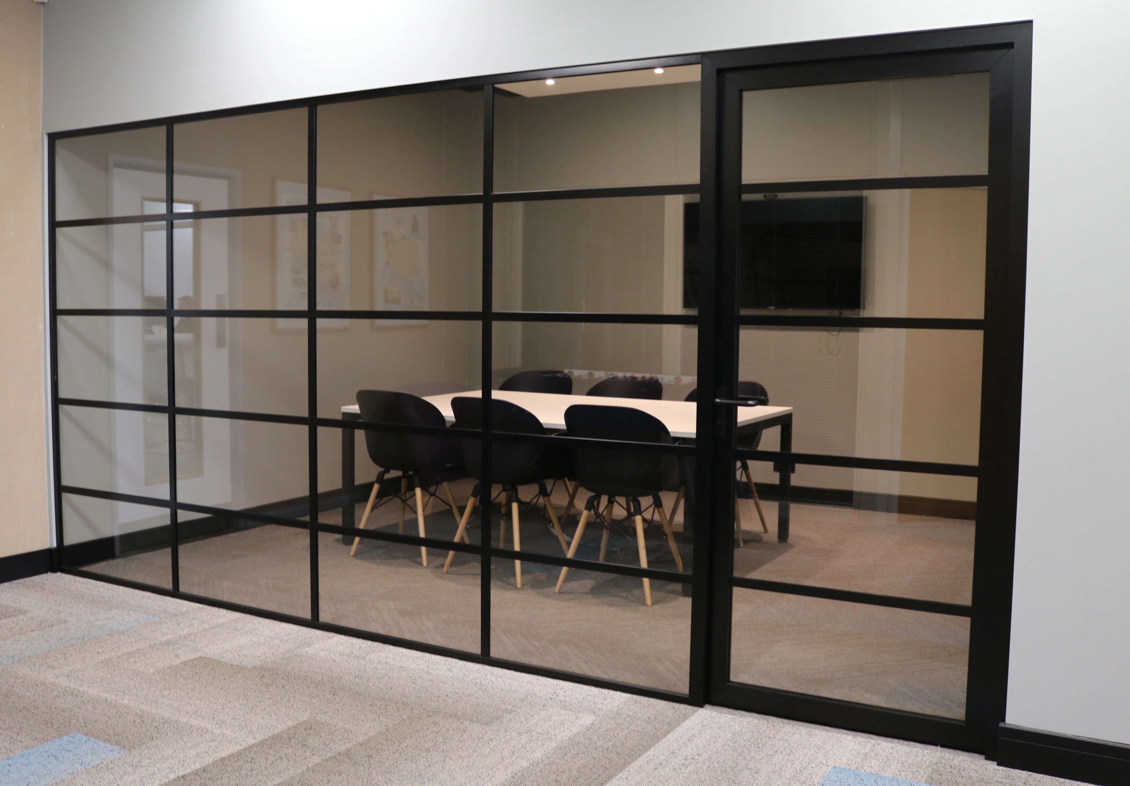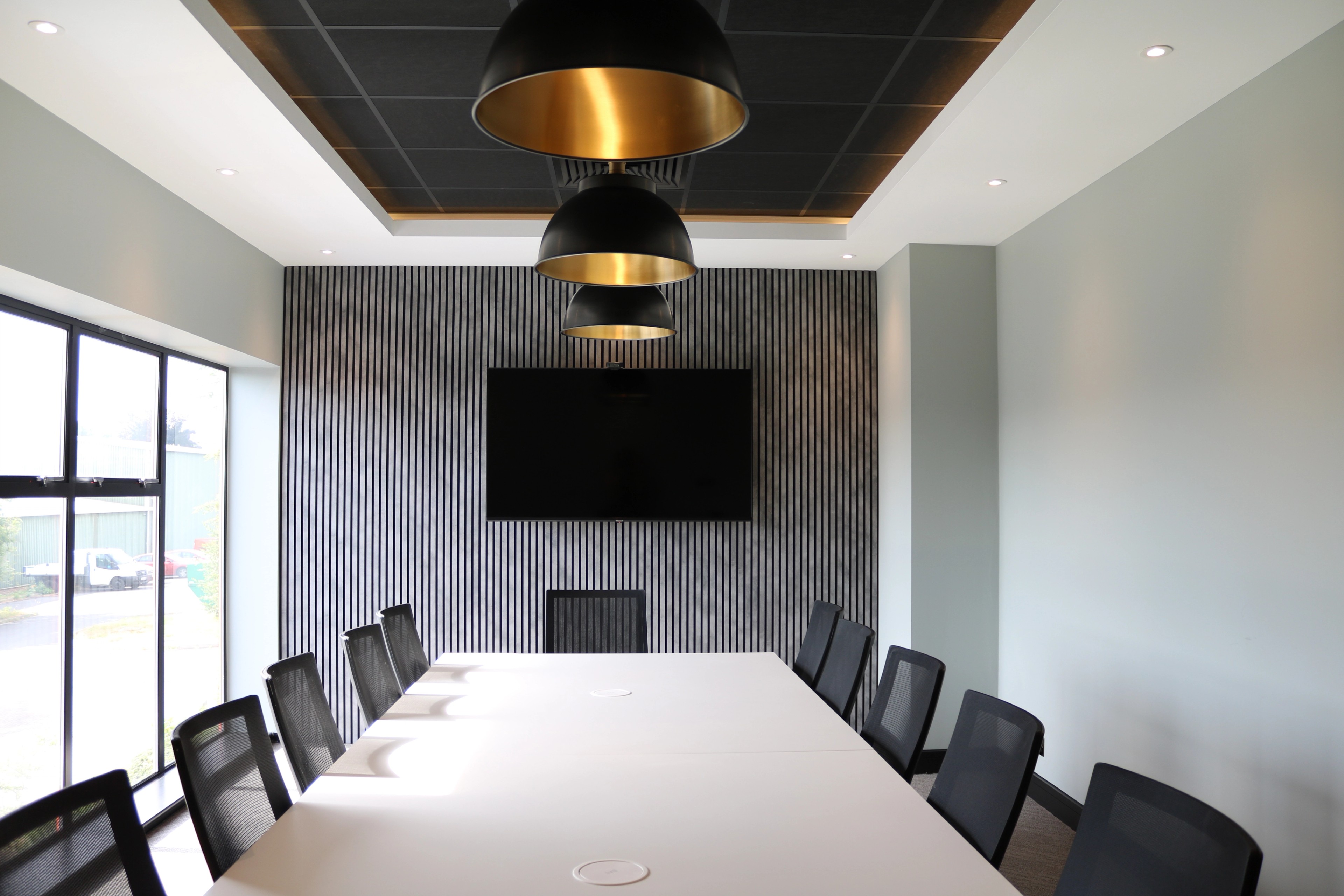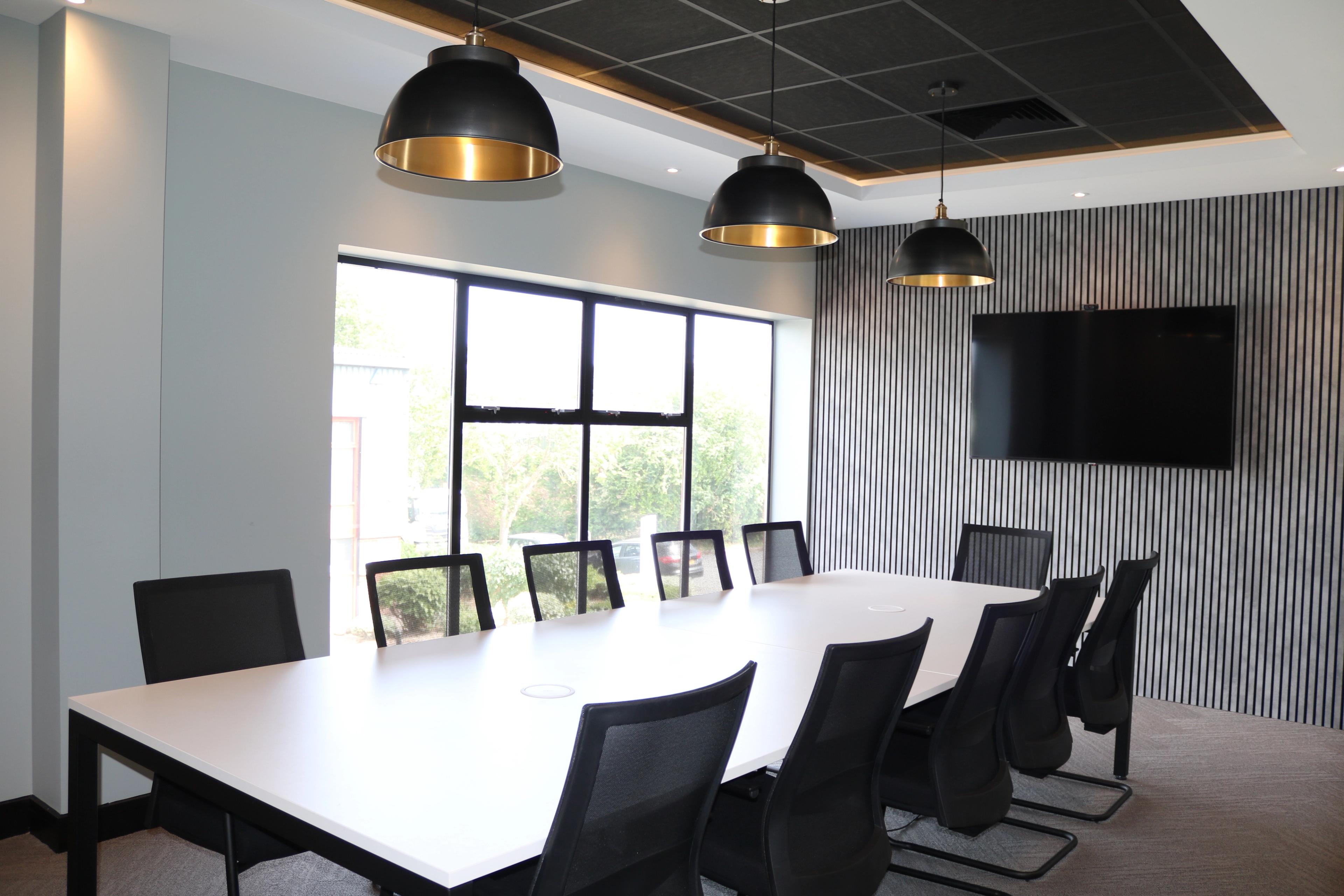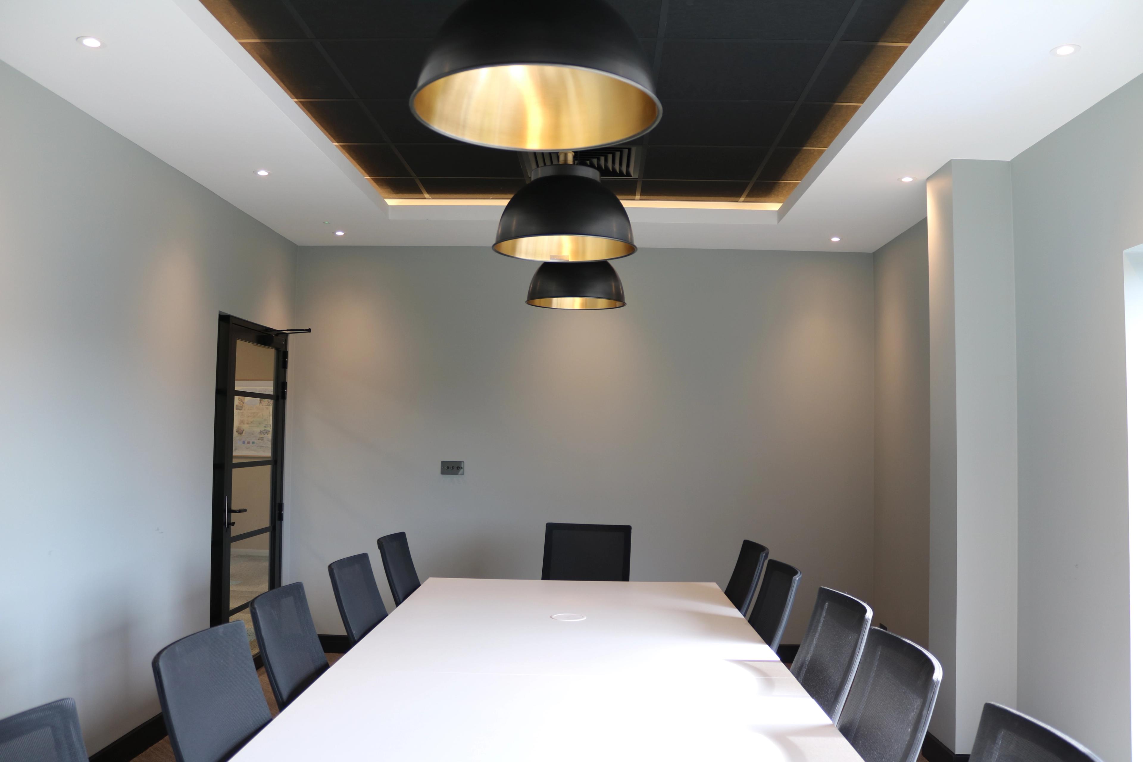 Creating a modern meeting room within our existing space had to be a modern recreation of our existing meeting room. Modernising the decoration and colour schemes from our range of samples and working with inspiration of other board rooms we have created for clients, we created a fresh and modern board room.