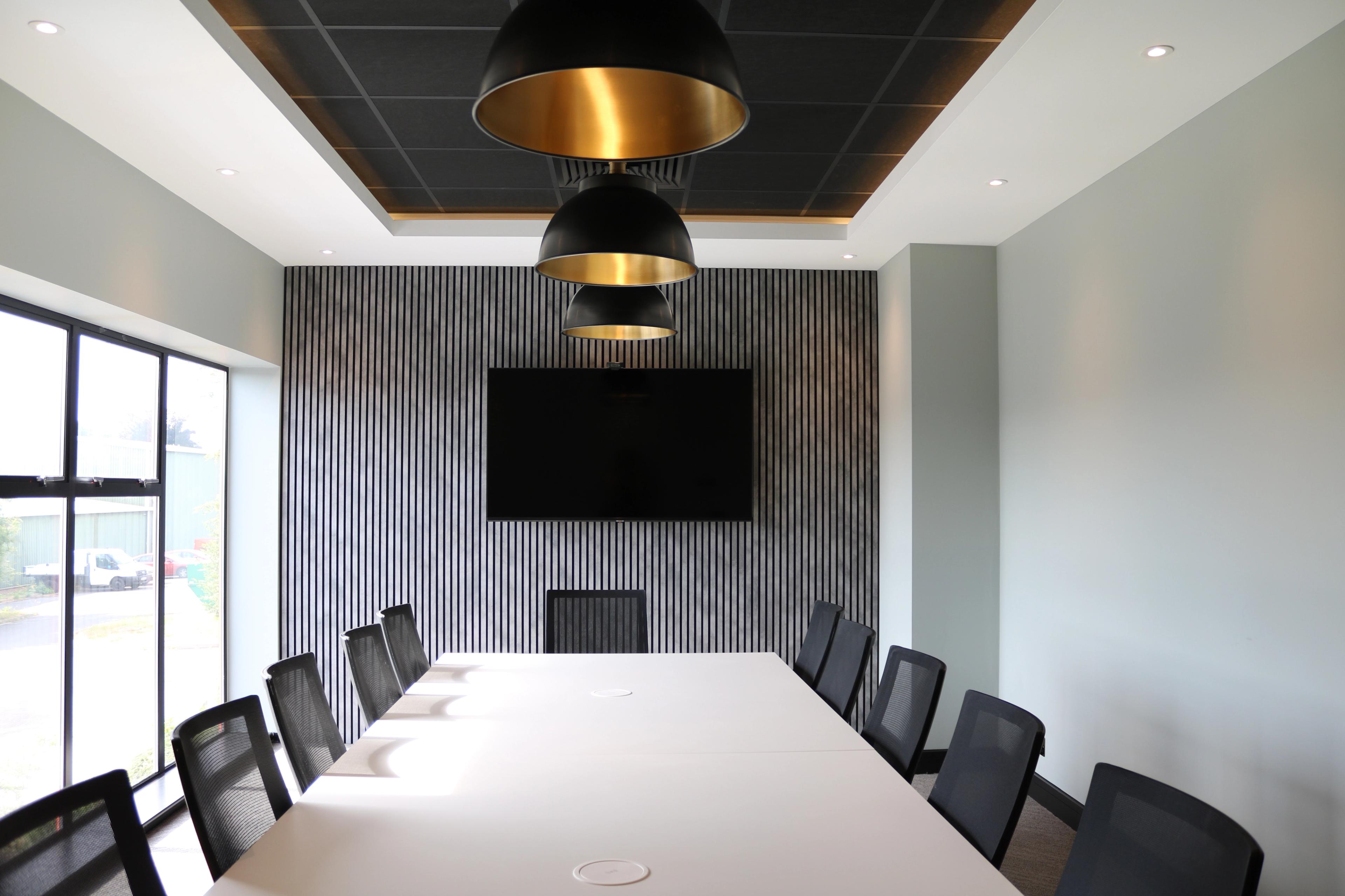 Concepts Group has refurbished our existing meeting room for the first time since 1990. With the full strip out of the existing meeting room, we installed new carpet tiles, meeting room furniture, slat wood wall panels, new suspended ceiling and feature bulkhead, lighting and electrics to create a state of the art boardroom.