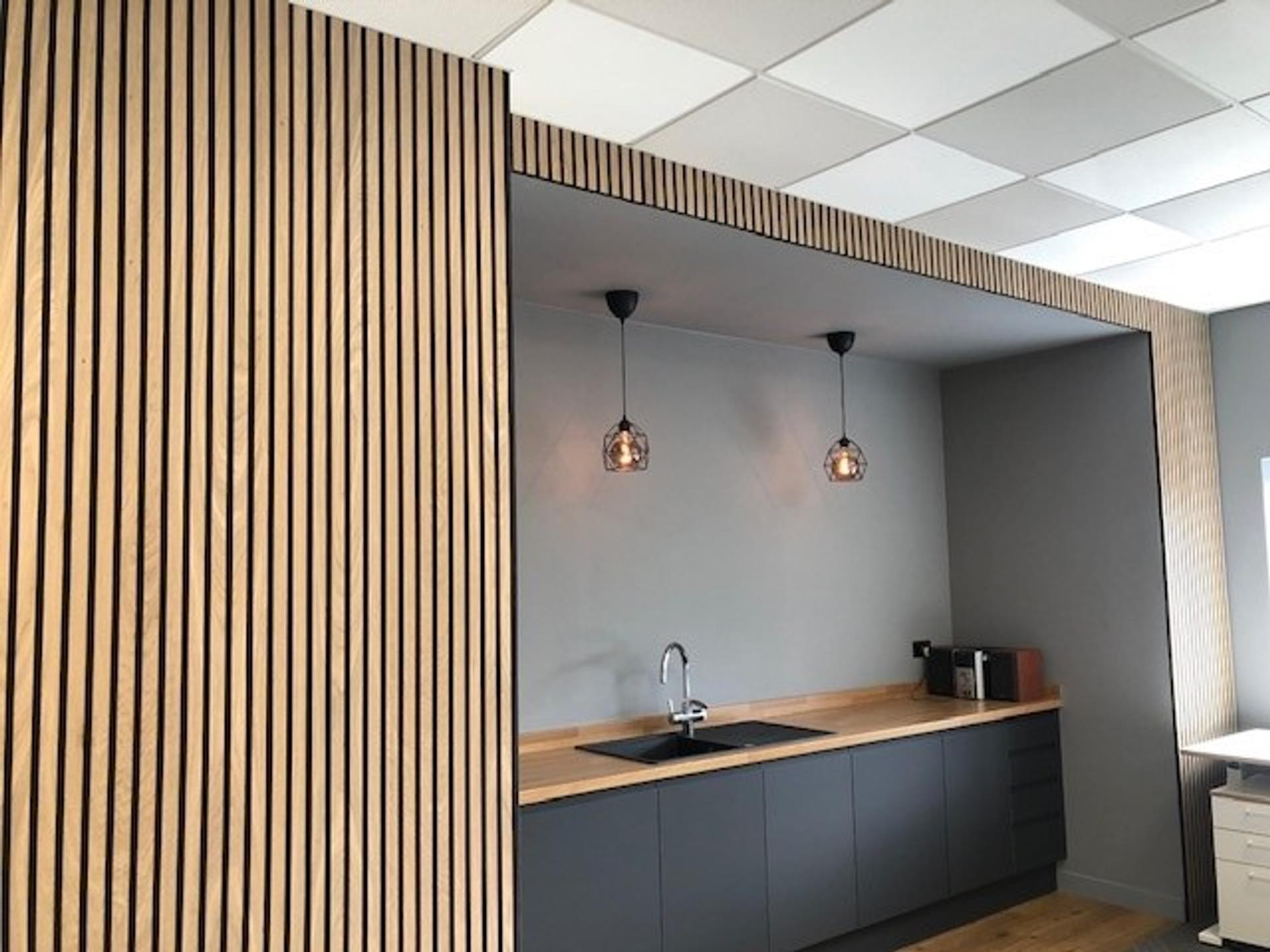 Suspended ceilings conceal the underside of the floor/roof above to generate new office space within an existing building. Easily-removed ceiling tiles offer instant access to the ceiling void – simplifying repairs or alterations. Suspended ceiling systems provide insulation for temperature control, as well as acoustic balance and sound absorption, which helps to deaden sounds and keep adjacent rooms quieter. Lighting fixtures, air conditioning, heating and ventilation systems can easily be installed within suspended or drop ceiling installations. To help you meet your building’s safety requirements, ceiling tiles can be engineered to increase fire resistance. With a range of colours and textures to choose from, our designers will ensure you find the ideal suspended ceiling tiles to complement your existing interior.